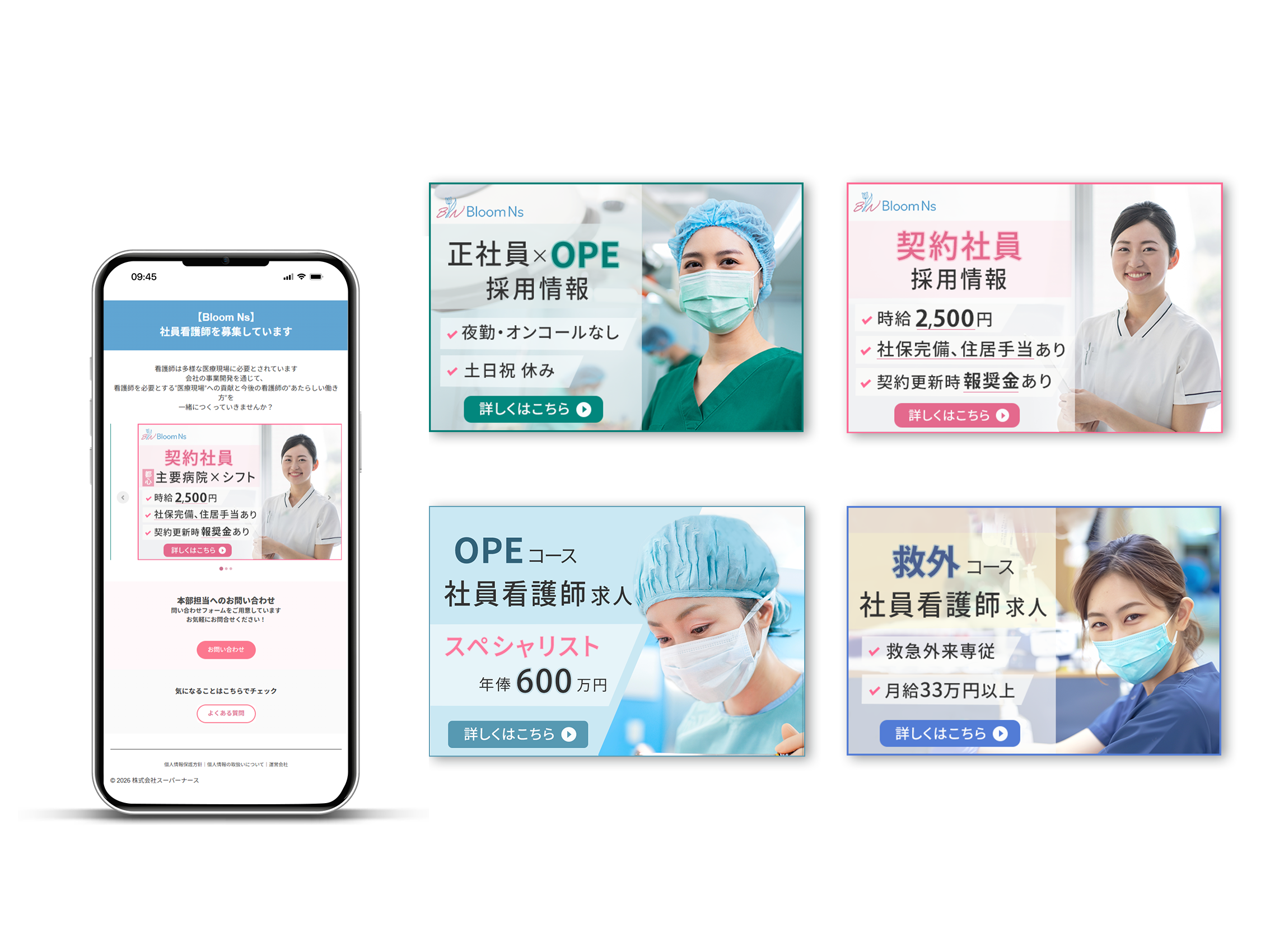 医療機関向け人材サービスの立ち上げプロジェクトに参画し、LP制作のディレクション、SEOコンテンツ制作、データ分析による改善施策の実行まで一貫して担当しています。